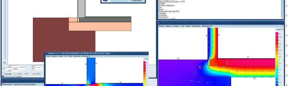 - Modéliser le flux thermique à travers le pont thermique à l’aide du logiciel HEAT2&3,